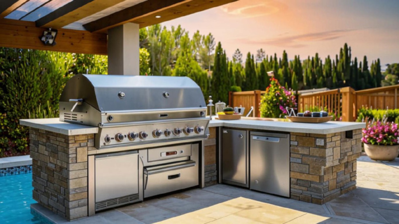 - Электрическая летняя кухня-гриль: Эти кухни работают от электричества и могут быть установлены как внутри помещения, так и на улице. Они обычно имеют регулируемую температуру и различные режимы приготовления.
