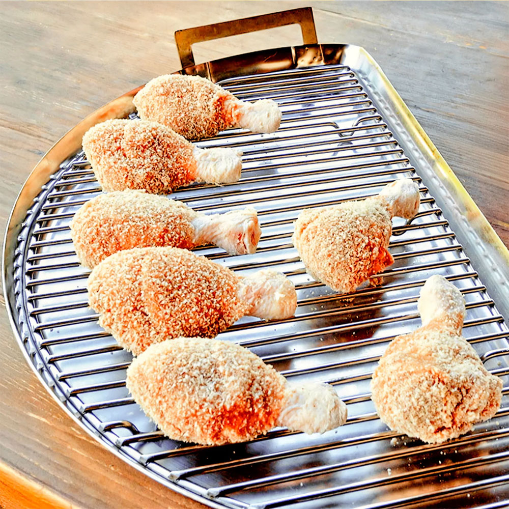 - Идеально подходит для поддона SnS Drip ‘N Griddle, а также устанавливается на решётку EasySpin 57 см и более крупные решётки.