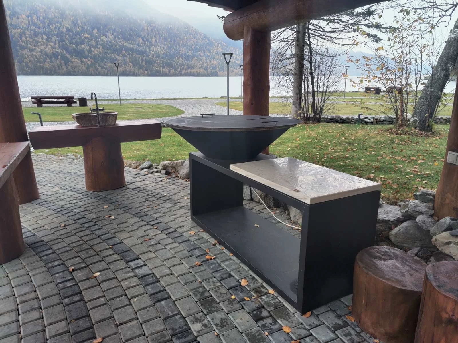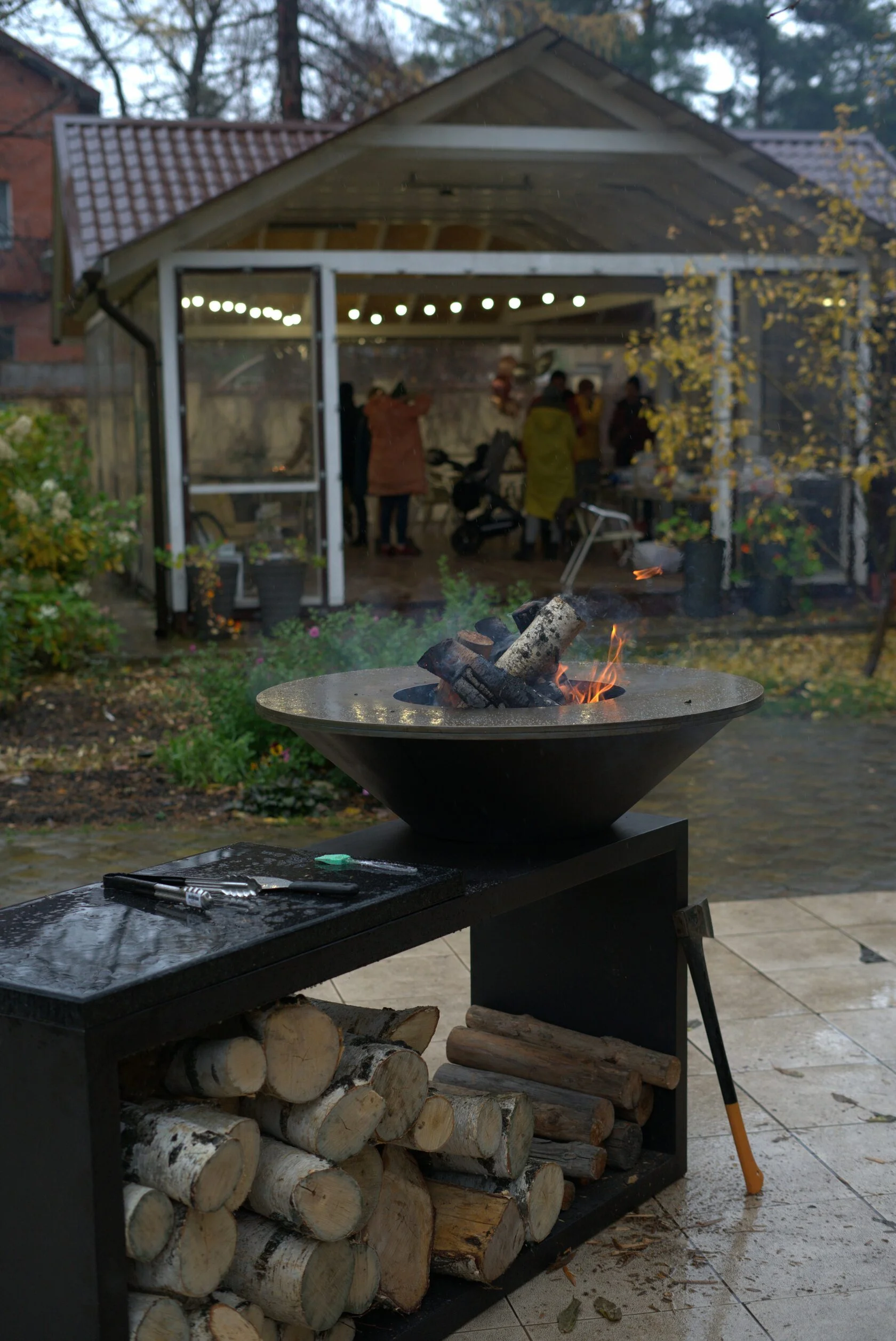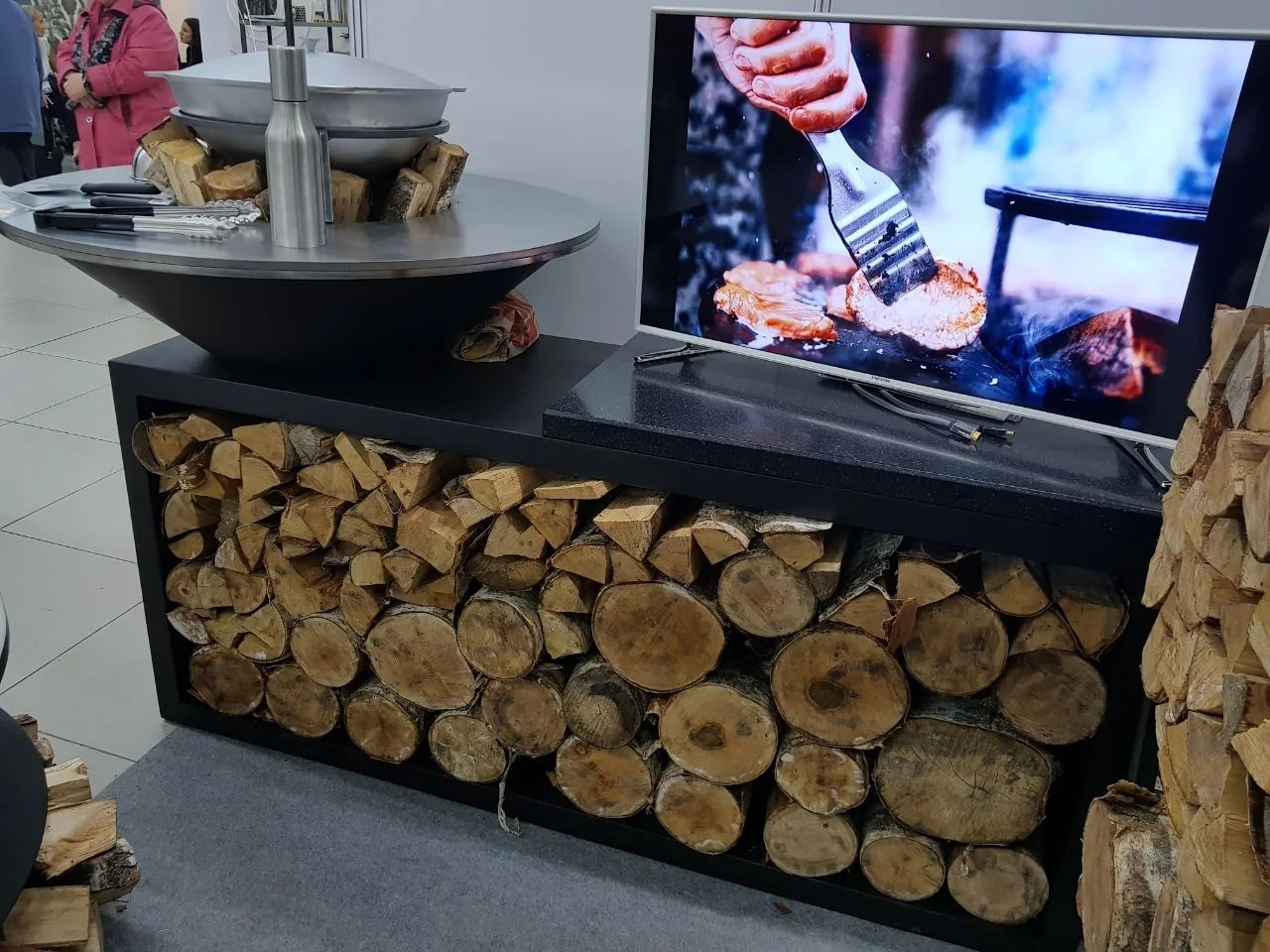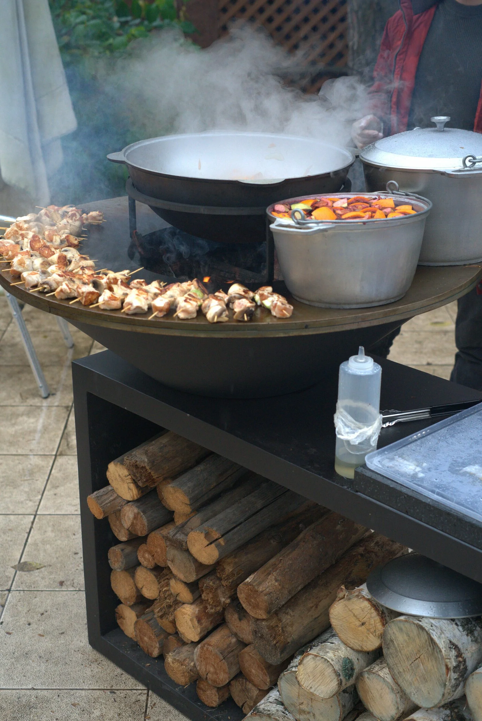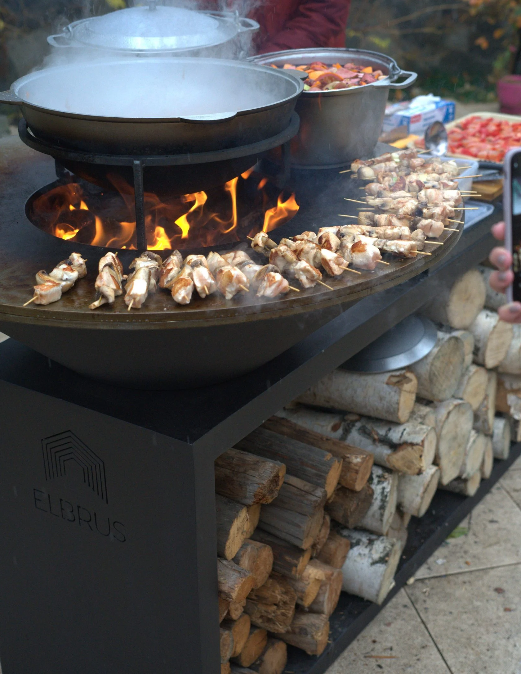 Открытый огонь нагревает стальное кольцо, на котором можно одновременно при разной температуре готовить овощи, мясо, птицу, рыбу, морепродукты, супы и соусы, горячие напитки.
