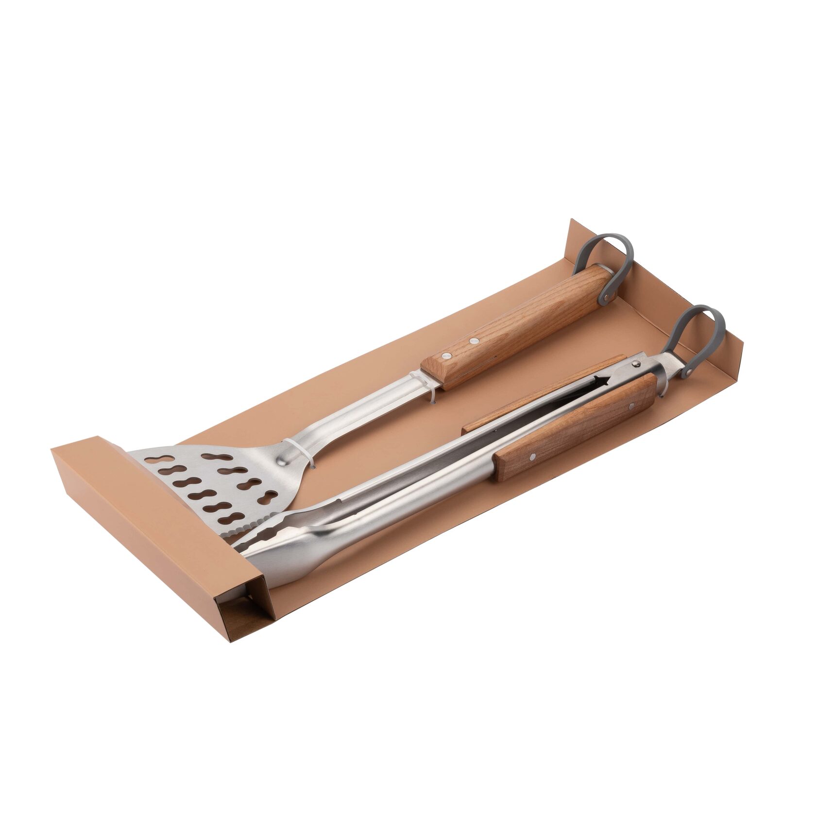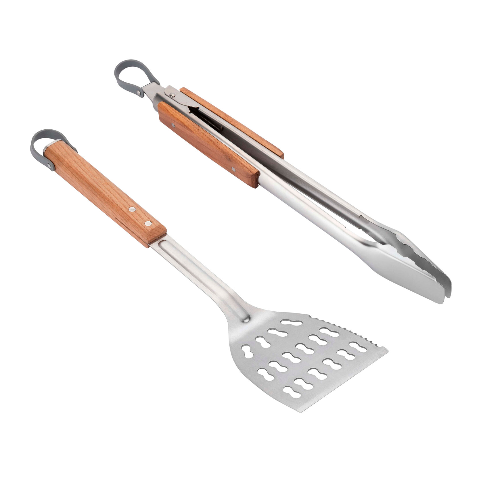 Лопатка и щипцы из высококачественной стали премиального класса с ручками из канадского ясеня.