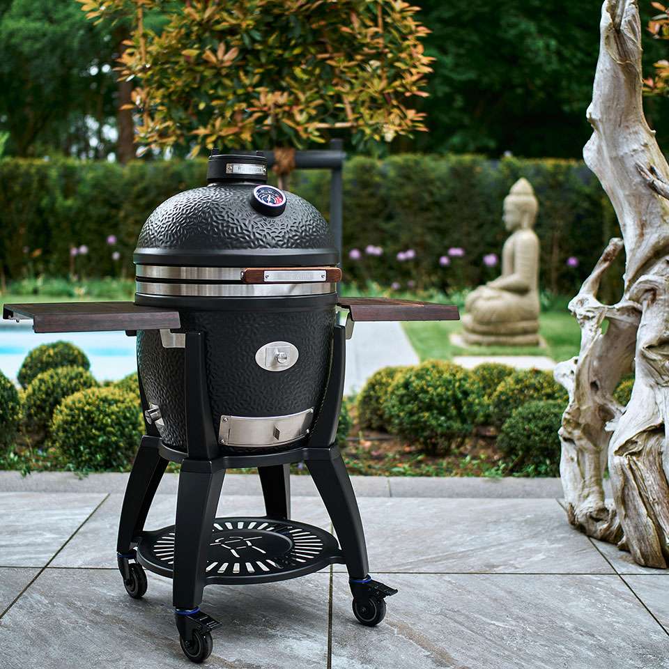 Monolith Avantgarde LeChef – новая и самая большая модель с диаметром решетки 52 см черного матового цвета в комплектации с боковыми столиками из карбонизированного бамбука и особо стабильной подставкой на колесиках. LeChef - прекрасный выбор для гриллинга, копчения, запекания при низкой температуре, выпечки хлеба и других кулинарных экспериментов для компании до 15 человек, а также для профессионального использования.
