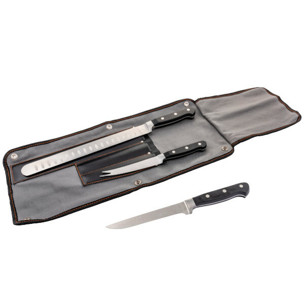 Набор из трёх ножей - самый необходимый аксессуар при приготовлении. Ножи обладают плотным литьем и удобными эргономичными рукоятками. Разные наконечники позволят без труда нарезать и разделать сразу несколько продуктов. В комплекте защитный чехол для безопасного и бережного хранения.