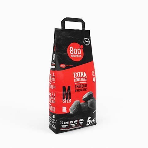 Брикеты для барбекю 800 Degrees Charcoal прессуются из сверхчистого концентрата углерода. Благодаря особенно высокой плотности брикеты для барбекю 800 Degrees Charcoal горят в 3-4 раза дольше, чем обычный древесный уголь. В то же время они горят чисто и равномерно, и их порции легко отмерять.