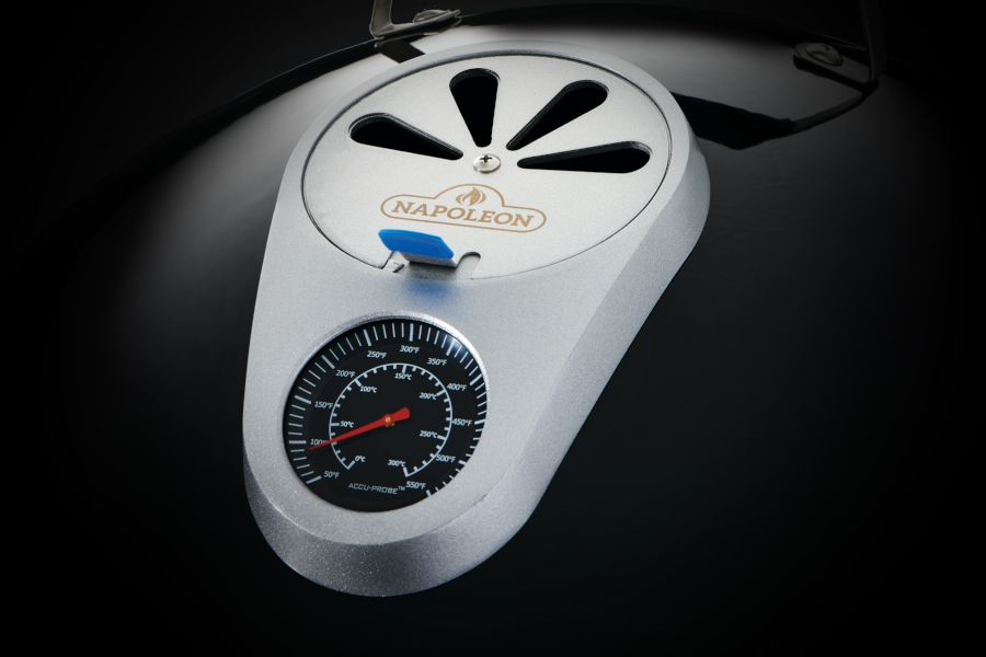 Конструктивно шиберная заслонка объединена с термометром ACCU-PROBE™, который позволяет контролировать температуру в Фаренгейтах и Цельсиях.