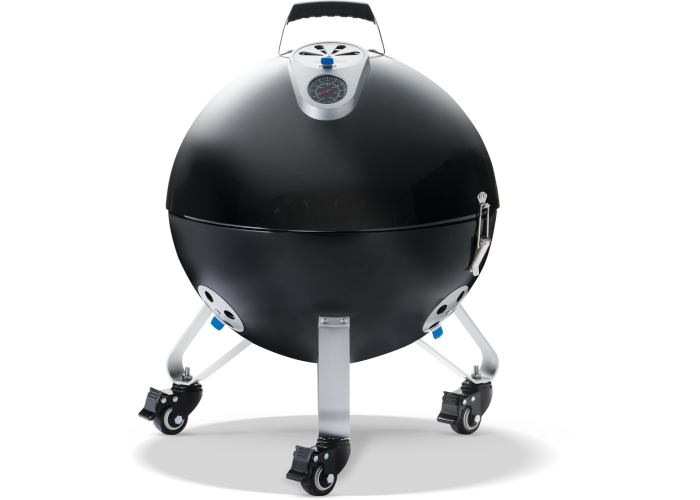 Отличную устойчивость всей конструкции обеспечивают три ножки, которые крепятся к сферическому основанию. Каждая ножка оснащена колесом со стопором для удобного перемещения смокера по поверхности.