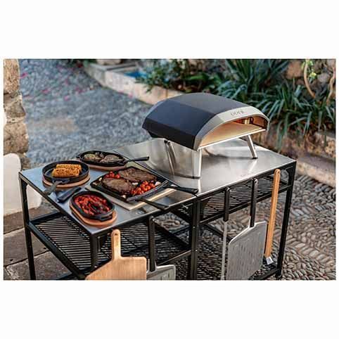 Сочетая безупречный дизайн с удобством приготовления на газу, Ooni Koda 16 может похвастаться широким, толстым камнем из кордиерита и инновационной L-образной горелкой.