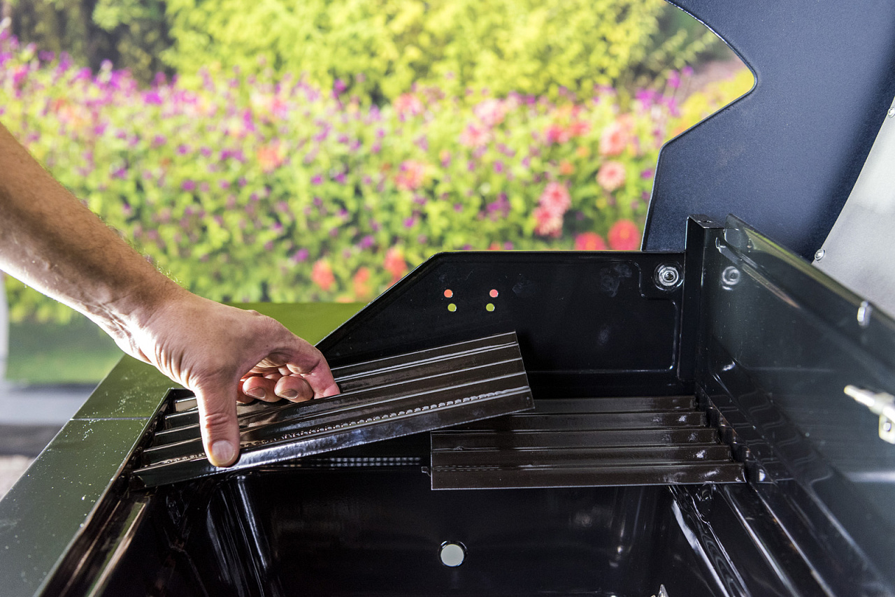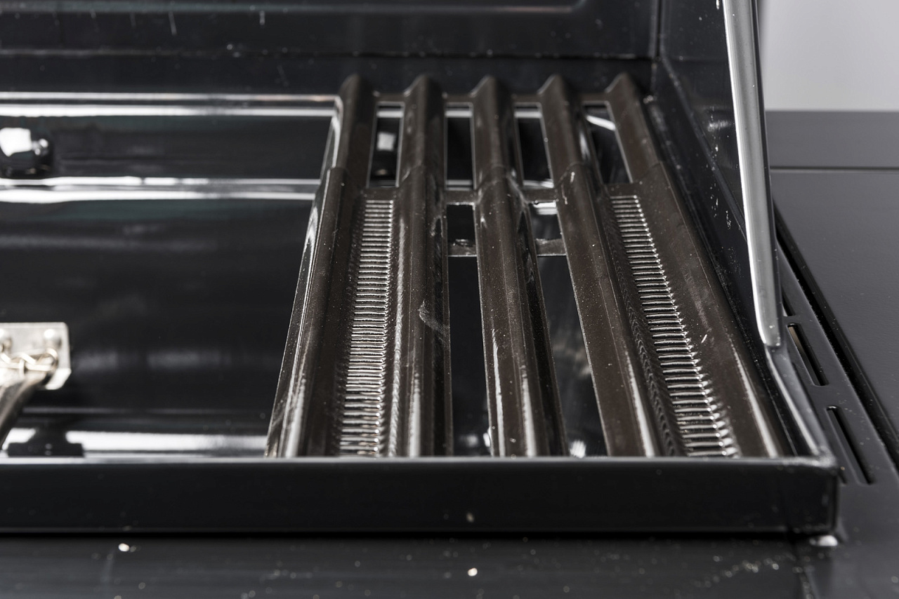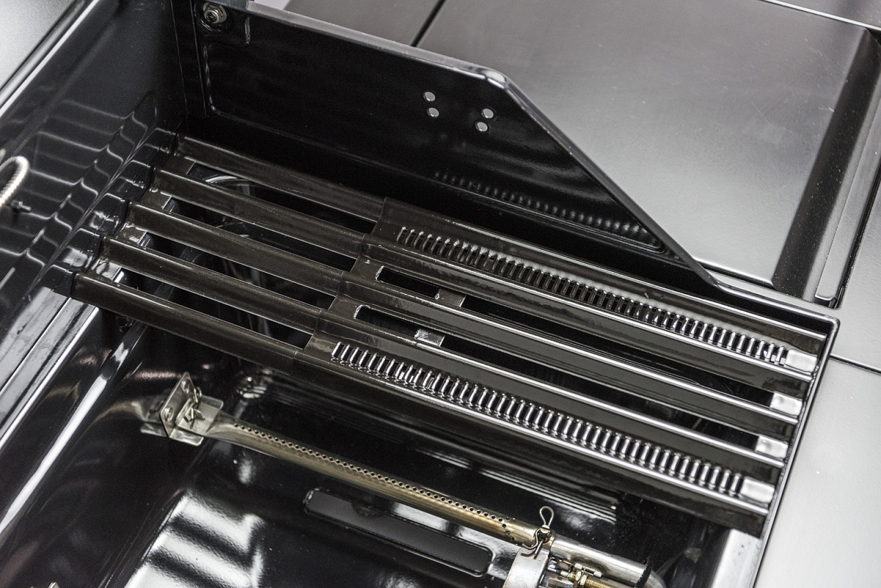 Универсальная стальная решетка для гриля с раздвижными секциями, покрыта эмалью чёрного цвета. Толщина прутьев 7 мм, ширина - 19,7 см, длина от 35,6 см до 49,5 см.
